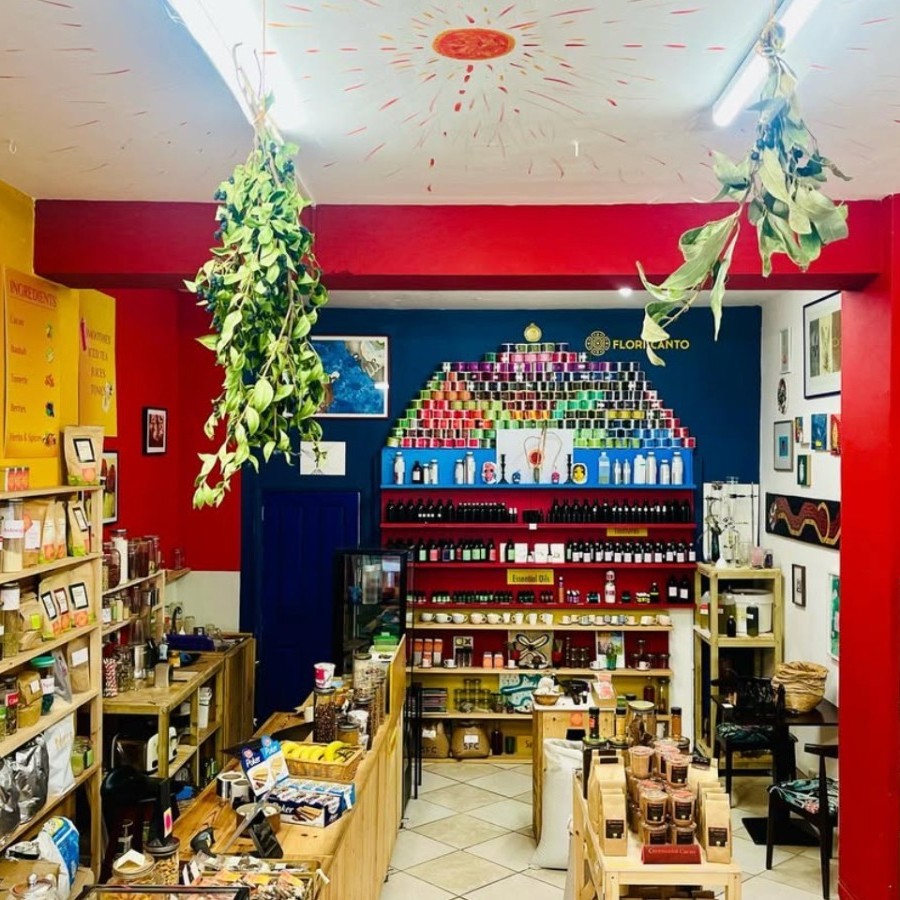 Flori Canto supplies organic and natural wellness products from their shop in Somers Town, London and supports sustainable farming and the visual arts. They specialize in teas, infusions, herbs, spices, superfoods, adaptogens, tinctures, essential oils, copal, ceremonial cacao, and coffee. Their drink bar serves smoothies, superfood food drinks, tea, coffee, hot chocolate, and healthy breakfast options onsite and for local delivery. Flori Canto offers workshops, supports local people to produce and market their own value-added products, and contributes to local art exhibitions, greening projects, and other community initiatives. Their organic products are certified by Soil Association.