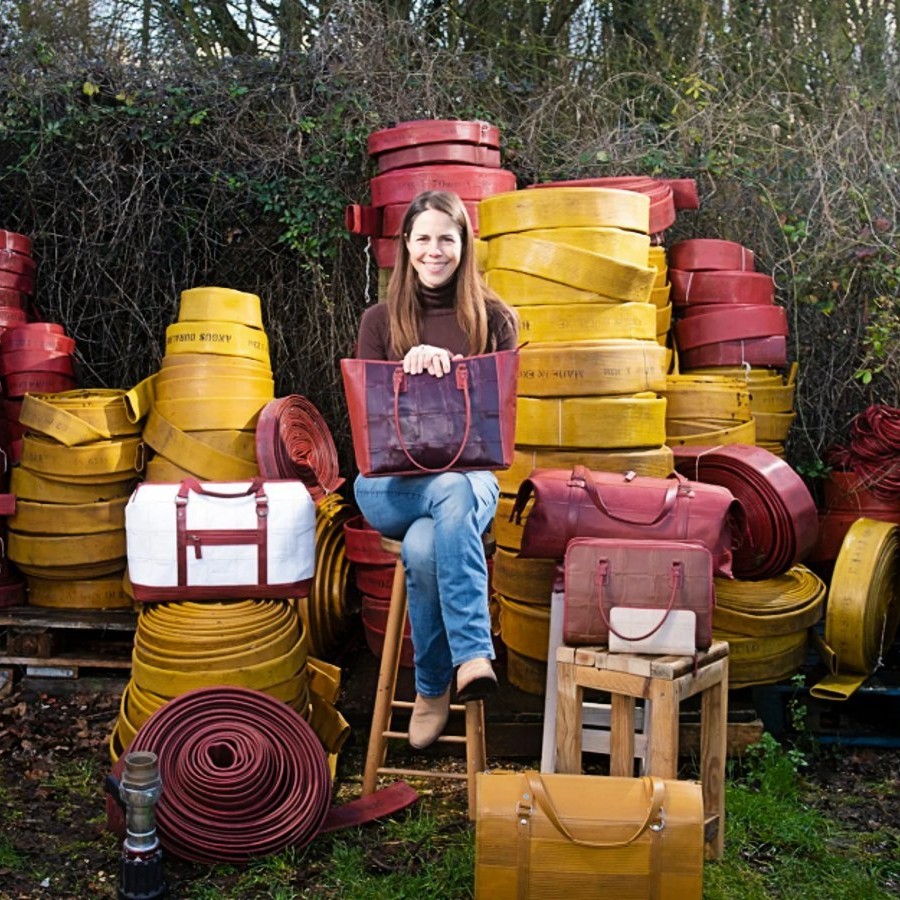 Elvis & Kresse rescues raw materials from landfill, transforms them into ethically handcrafted bags, accessories, and housewares, and donates 50 percent of profits to charities related to the reclaimed materials. They have been working with their signature material, decommissioned London fire hoses, since 2005. They also rescue parachute silk, offset printing blankets, jute and hessian coffee bags, shoe boxes, tea sacks, and auction banners. Since 2017, they have been partnering with the Burberry Foundation to help rescue and transform Burberry leather off-cuts. Profits from the fire house collection are donated to the Fire Fighters Charity, and profits from the leather collection are donated to Barefoot College to train female solar engineers. In 2021, Elvis & Kresse transitioned their headquarters to New Barns Farm to work towards being Net Regenerative by sequestering carbon and improving biodiversity. They are an accredited Living Wage Employer, a certified B Corporation, and a member of Social Enterprise UK.