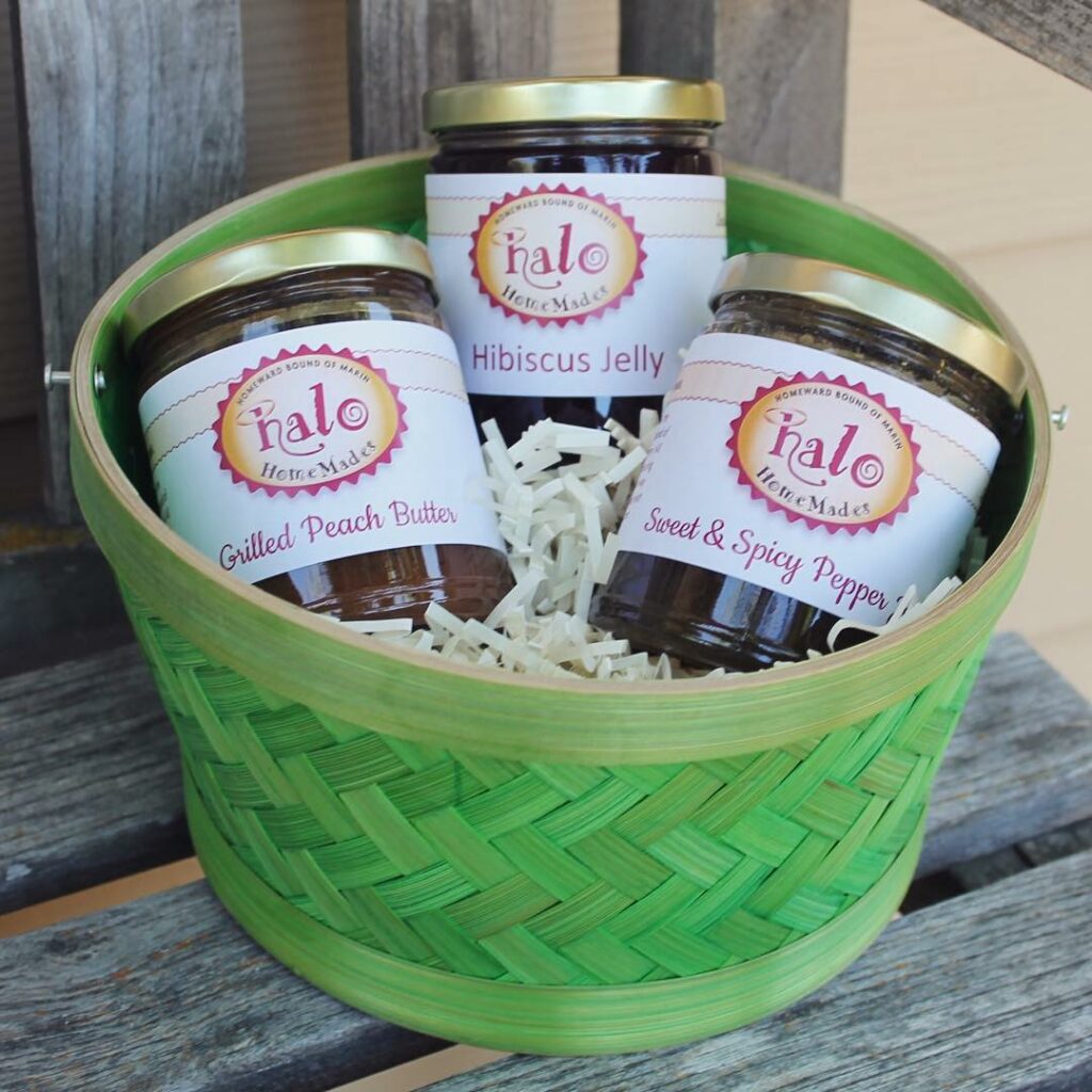 Halo HomeMades is a social enterprise of Homeward Bound of Marin that helps low income adults and people transitioning out of homelessness gain employment skills for a stable and happy future. They specialize in natural artisanal chocolate truffles, jams, pickles, relishes, barbecue sauce, mole sauce, and honey from their Novato hives. Products are created by students and staff at the Fresh Starts Culinary Academy. All profits are used to support job training, education, and housing for people transitioning out of homelessness in Marin County.