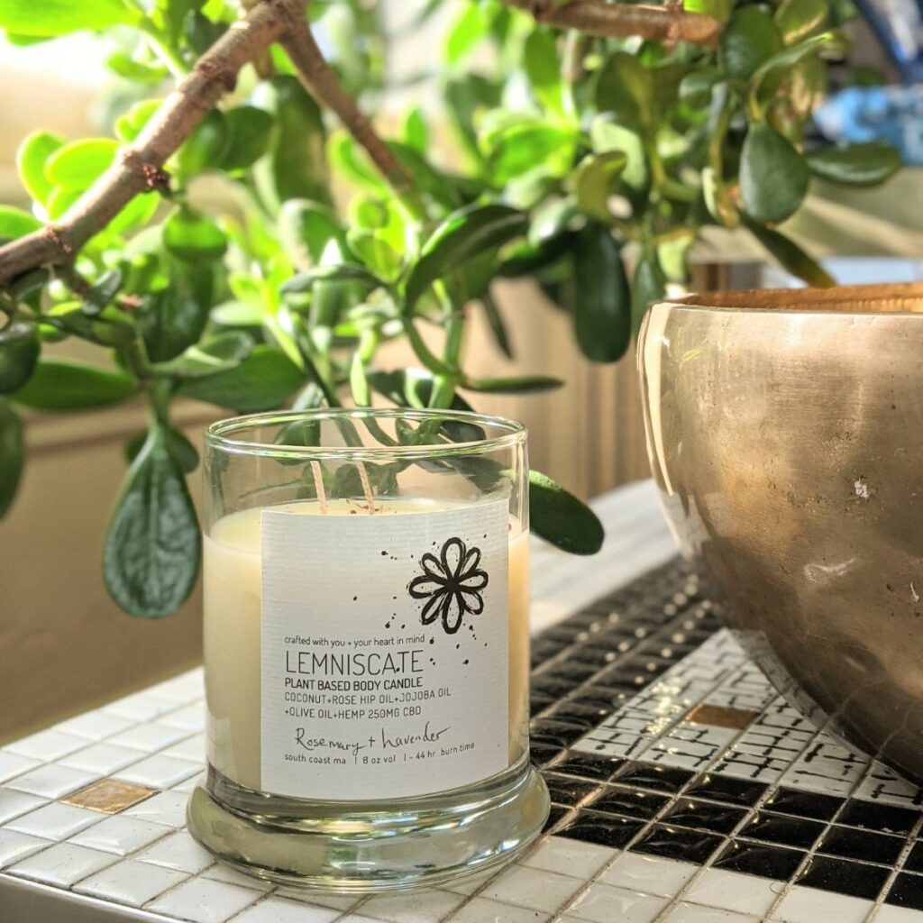 Lemniscate creates natural aromatherapy massage candles from blends of plant-based oils like coconut, olive, rosehip, jojoba, local cannabidiol (CBD), and essential oils. When lit, the therapeutic warm oil can be applied to the skin leaving no wasted wax. Lemniscate Candles collects and sanitizes secondhand vessels for their candles, and when the candle is finished, the container can be used again. Lemniscate Candles supports Gasoline Alley Foundation and Buzzards Bay Coalition.