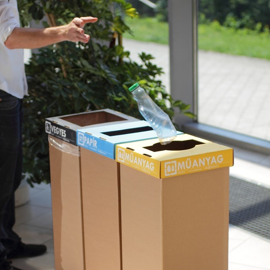 Recobin offers affordable indoor recycling bins made from recycled cardboard and designed for a circular economy. The bins can be used to collect PET bottles, paper, cans, biowaste, and mixed waste and are ideal for office buildings, public institutions, schools, conferences, and other events. They are transportable on pallets, quick and easy to assemble, durable, and recyclable at end of life. Recobin provides a range of complementary services including customization with logos or other artwork, planning, setup, monitoring, staff training, recycling campaigns, and waste flow assessments.