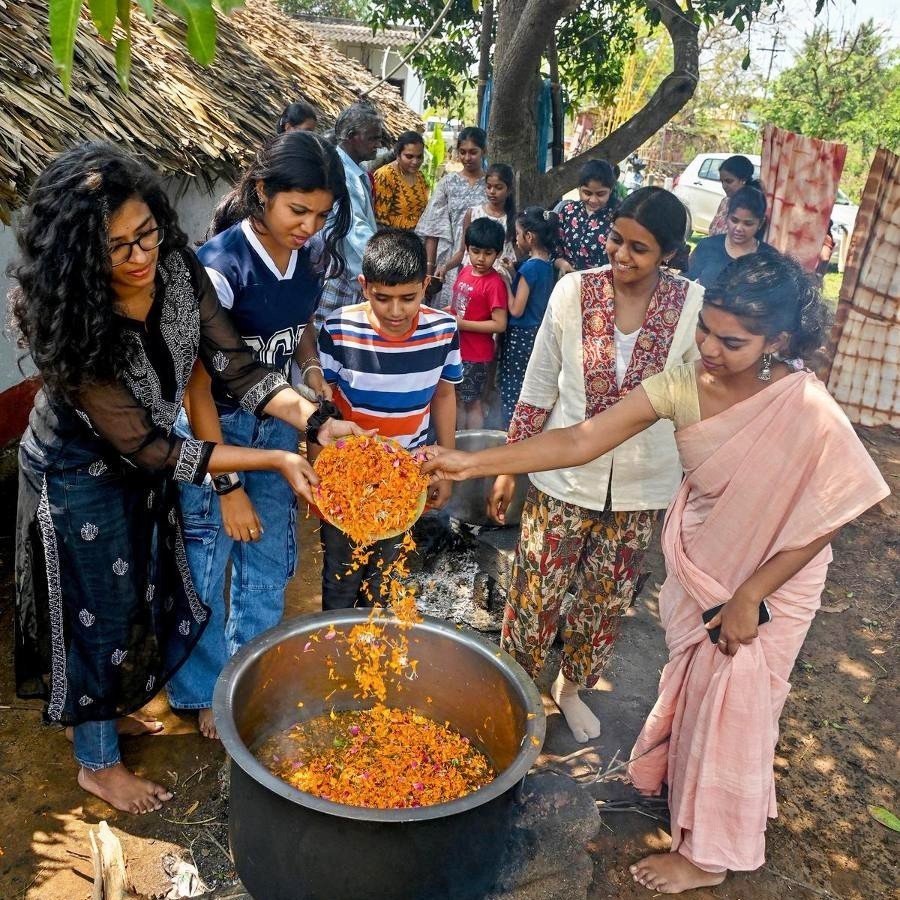 Sankalpa Art Village revives indigenous crafts and natural dye practices in India to create livelihood opportunities and sustainable communities. They specialize in handwoven fabric and children’s clothing dyed with local herbs, toys made from naturally lacquered upcycled wood, and housewares made from terracotta, coconut shell, and recycled brass. They also offer natural food, herbal tea, and personal care products, experiential tours, and workshops. Sankalpa Art Village focuses on inclusive products that their own employees can afford. They plant seeds and saplings in deforested areas in the nearby hills.