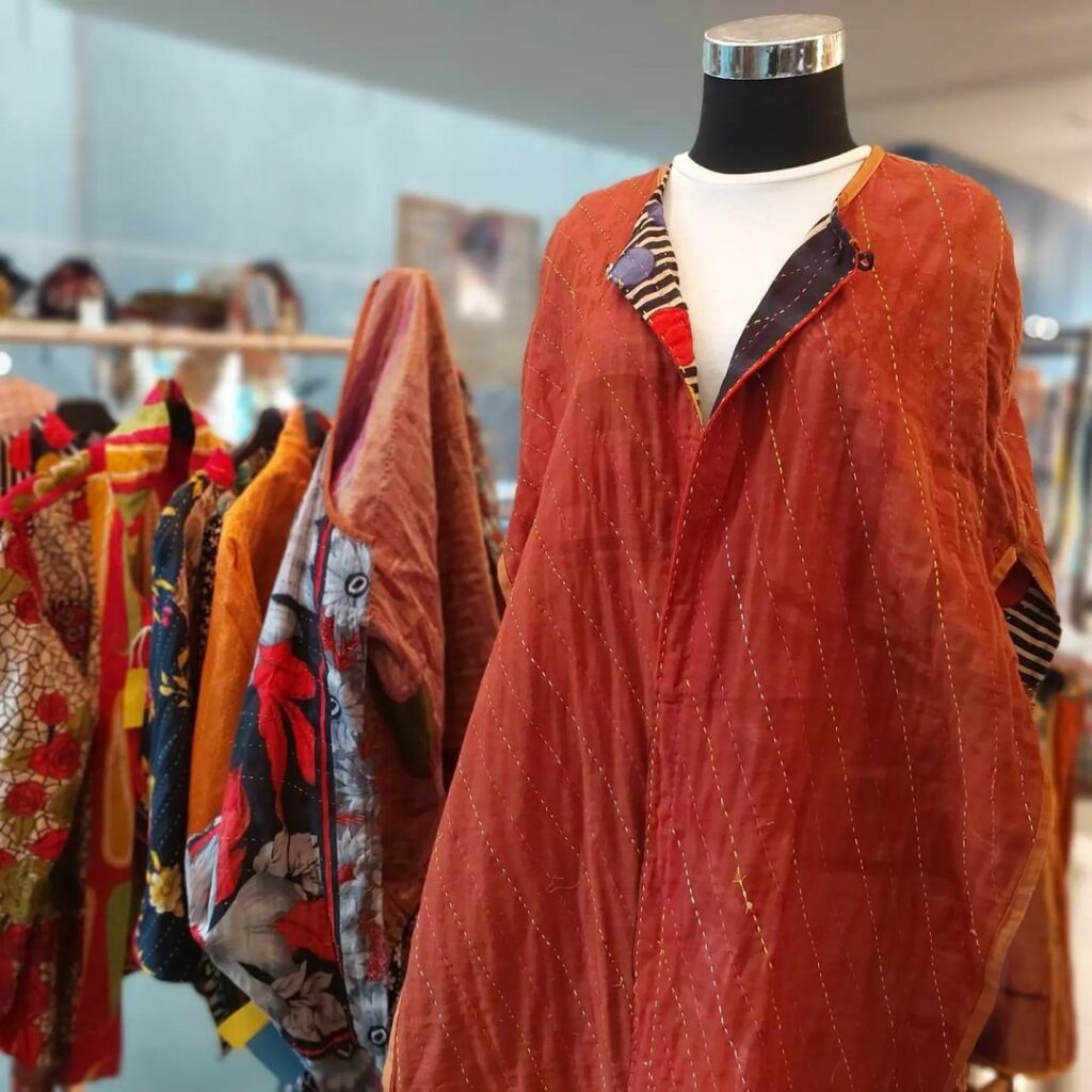 World of Ikat was started to preserve India’s textile heritage, empower artisans from marginalized communities, and promote zero waste fashion. They specialize in tops, kurtas, dresses, bags, and accessories made from handloom cotton, ikat, and block print textiles and azo-free dyes. World of Ikat partners with cooperative societies and independent master weavers, pays fair living wages, and provides training, design interventions, market access, and sustained work opportunities. They offer inclusive sizing and create products to be multi-functional and long-lasting. Textile waste is upcycled into fabric jewelry and cloth bags for packaging. World of Ikat has Craftmark and PETA Approved Vegan certification.