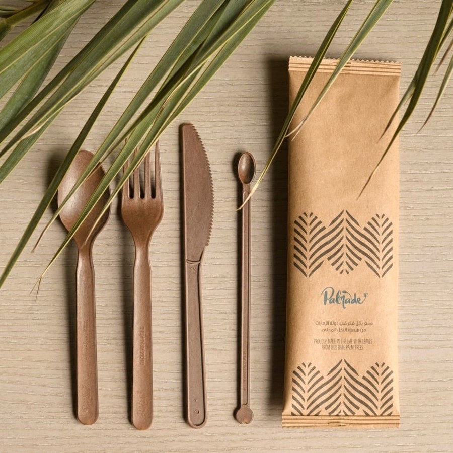 Palmade provides local alternatives to single-use plastics in the United Arab Emirates to help people make better choices and transition into more sustainable ways of living. They transform fallen date palm leaves that would normally be sent to landfill or burned into biodegradable and compostable spoons, forks, knives, stirrers, and straws. Palmade collects trimmed leaves from farmers, landscaping companies, and municipalities and gives them a second life. They donate products to Ramadan events for low-income workers in Dubai.
