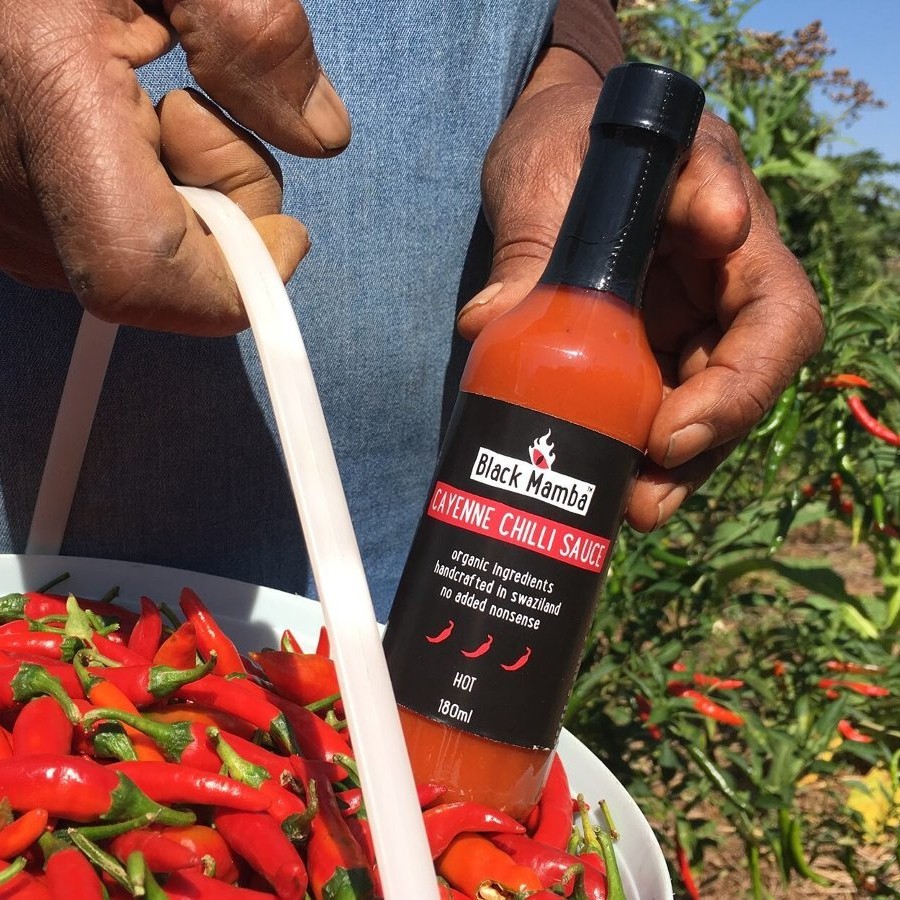 Black Mamba produces natural chili sauces, pestos, chutneys, and jams in Eswatini that are “good for you, good for the earth, and good for rural communities.” They partner with Guba, a local permaculture organization, to train Swazi smallholders in regenerative organic agriculture techniques that build soil and increase biodiversity. Black Mamba purchases chilies and other fresh produce from these smallholder farmers, most of whom are women, and pays consistent fair trade prices. They also organize financial literacy training, gender-based violence seminars, breast cancer and cervical cancer checks, and other wellness programs for farmers and employees. Black Mamba prioritizes packaging that is either easily recyclable or biodegradable and reuses, composts, or recycles the majority of their waste. They donate to the Eswatini Antivenom Foundation and the Black Mamba Anti-Poaching Unit in South Africa. Black Mamba is part of Swaziland Fair Trade (SWIFT).