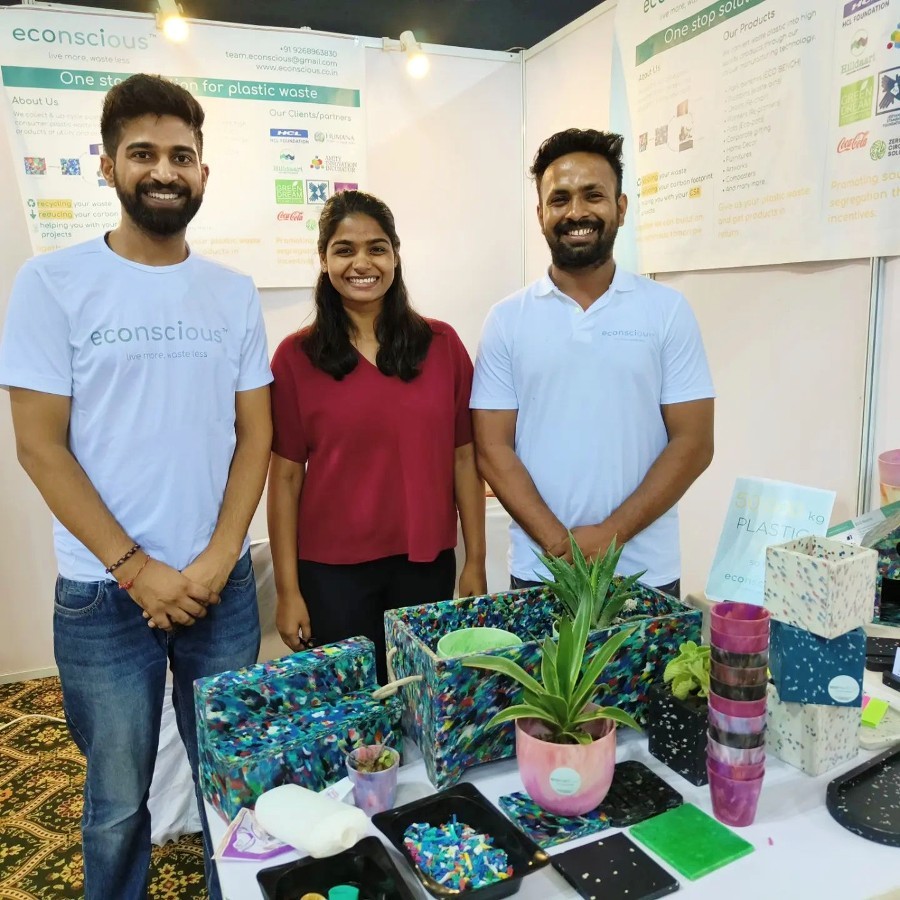 Econscious reduces plastic pollution by transforming post-consumer plastic waste into functional, innovative products. They provide a door-to-door plastic waste pickup service in the Delhi area and offer a range of recycled plastic home and garden products including planters, pots, laptop stands, desk organizers, coasters, and bookshelves. They also create plastic paver blocks, tiles, sheets, and panels for landscaping and interior design products. Econscious has worked with institutional partners to produce customized gifts and recycled plastic benches and and waste bins for public spaces. They use their platform to raise awareness about waste reduction, conscious living, and transitioning to a circular economy.