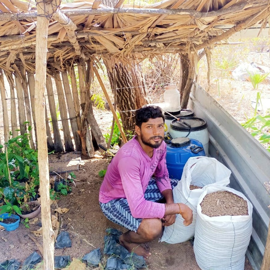 Vithu Organic Farm grows dry zone vegetables, turmeric, sugarcane, and moringa in northeastern Sri Lanka. They use biochar to improve the soil and produce natural fertilizers and pest repellents from locally available materials. Vithu Organic Farm is verified under a local organic participatory guarantee system (PGS).