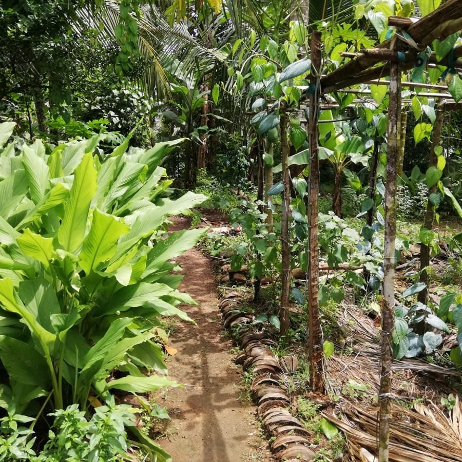 Gaha-Kola aims to make organic fruits, vegetables, and spices more accessible and affordable. They have seven acres of organic land and forest at Maligathenna Estate in Kandy, and they working with low income families in the surrounding area to help them transition to organic practices. Gaha-Kola has organic spices like ginger, turmeric, cinnamon, and pepper, organic fruits like papaya, guava, lime, banana, passion fruit, tamarind, lawulu, and seasonal upcountry vegetables. They maintain an onsite nursery, practice mixed cropping, use natural inputs like seaweed, fish waste, and neem, have a profit sharing incentive scheme for workers, and contribute to local community service projects. Gaha-Kola is verified under a local organic participatory guarantee system (PGS).