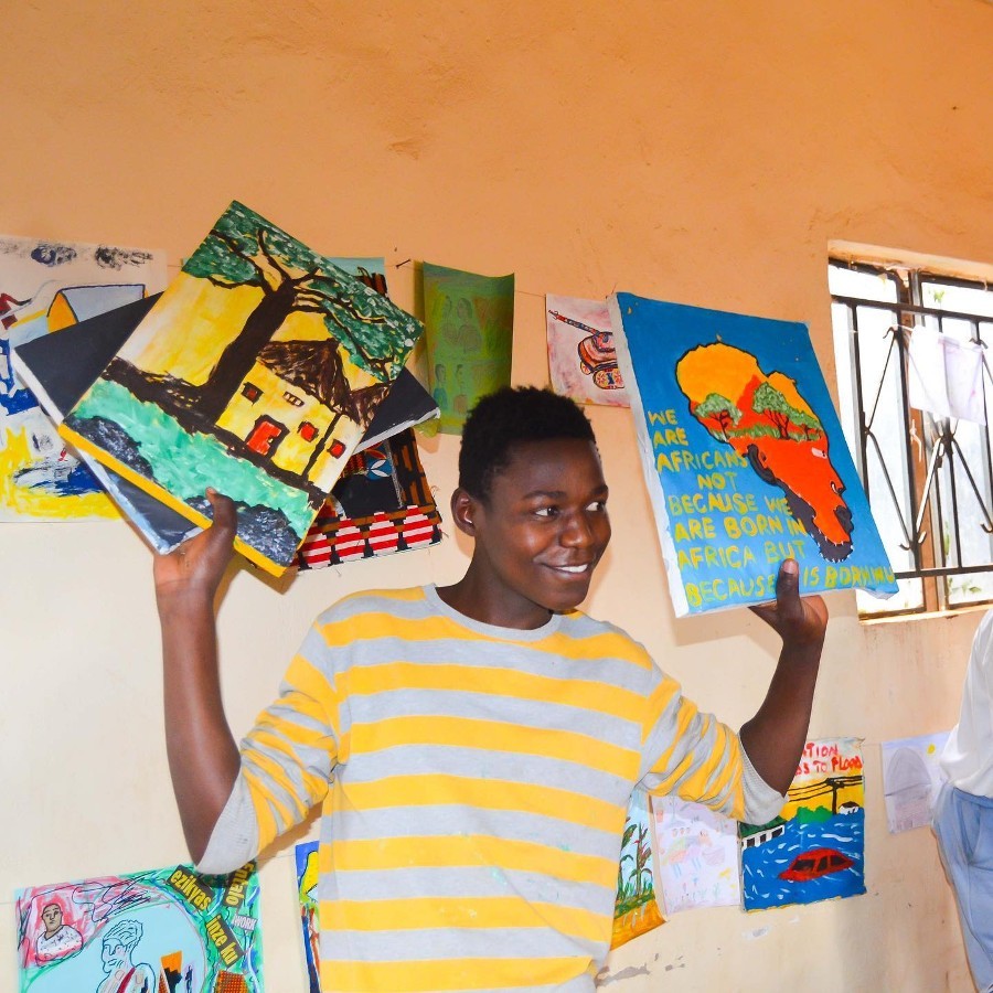 Faces Up Uganda empowers young people from underserved communities through creative arts, mentorship, and hands-on skills training and enables them to take the lead in bettering their own lives. They believe art and creative expression, coupled with mentorship, can help young people understand the world they live in, find purpose, create meaningful connections, and develop the tools they need to flourish. It can also lift the voices of underrepresented groups so their perspectives, experiences, and abilities shape a more inclusive world. Faces Up started from a community center in the Masanafu neighborhood of Kampala and now reaches people internationally through virtual exhibitions and events. Their online store includes art prints from the young artists and bags, T-shirts, and other products inspired by their artwork. Products are sold to raise school fees and ensure the program is self-sustaining. Faces Up is a youth-led initiative that is registered as a not-for-profit organization.