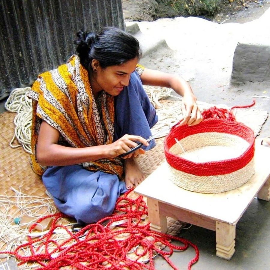 Shohojogita was started in 2004 to create employment opportunities for disadvantaged and marginalized rural women in Bangladesh through the production of fair trade housewares and accessories. They work with more than 140 artisans that specialize in bags, baskets, and mats made from jute, hogla seagrass, date palm leaves, and other natural fibers. They are also known for their hand woven and hand embroidered textiles and bags made from upcycled and recycled materials. Shohojogita sells their own products locally and works with international partners to develop custom designs for export. The artisans are organized in self-help groups and have access to fair wages, skill training programs, advance payments, and small grants for health, education, and emergency needs. Shohojogita is a member of Banglacraft and Ecota Fair Trade Forum and is a provisional member of the World Fair Trade Organization (WFTO).