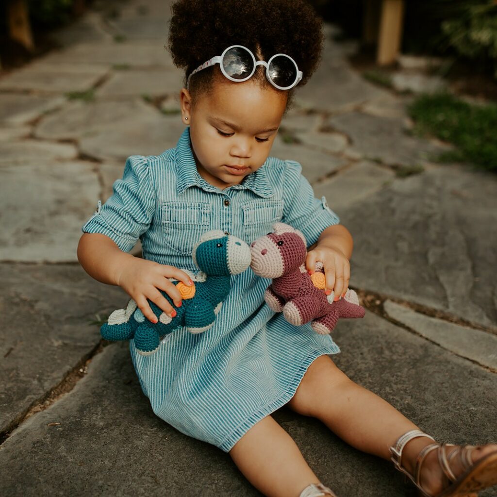 Pebble specializes in contemporary fair trade toys that are hand knit or crocheted by Hathay Bunano artisans in Bangladesh. Hathay Bunano, which means handmade in Bangla, is a not-for-profit social enterprise that was started in 2004 to create fairly paid, flexible employment opportunities for rural women in disadvantaged areas. Their toys, rattles, baby blankets, and hats meet international standards for child safety. Pebble offers a certified organic cotton range and ships in compostable packaging. Profits are used to support local communities, promote the fair trade movement, and expand the impact of Hathay Bunano. Pebble is a guaranteed member of the World Fair Trade Organization.