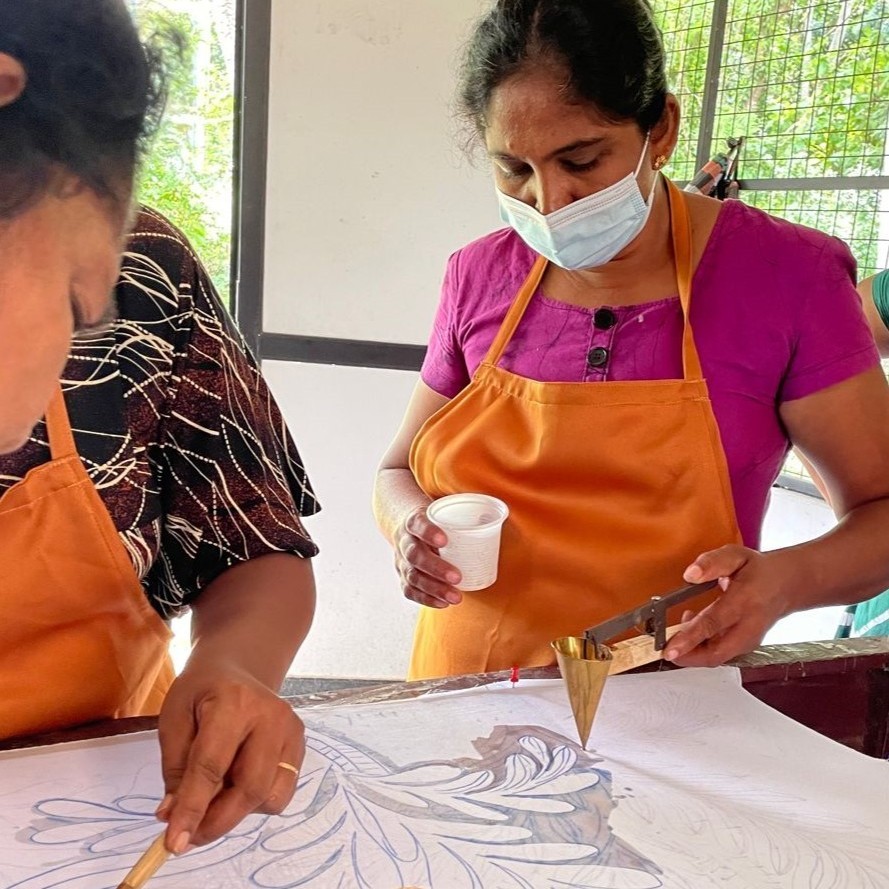 Disala produces batik clothing, accessories, and housewares to preserve cultural heritage and uplift and empower rural women in Paduwasnuwara, Kurunegala. They showcase the skills and creativity of women artisans and provide training, market access, and sustainable income. Disala uses azo-free dyes and onsite wastewater treatment tanks. Treated water is reused for gardening, and the dye waste is sent to a waste management facility for further processing. Disala operates the workshop as a community enterprise. Surplus is distributed to participating women, and a revolving loan fund is under development.