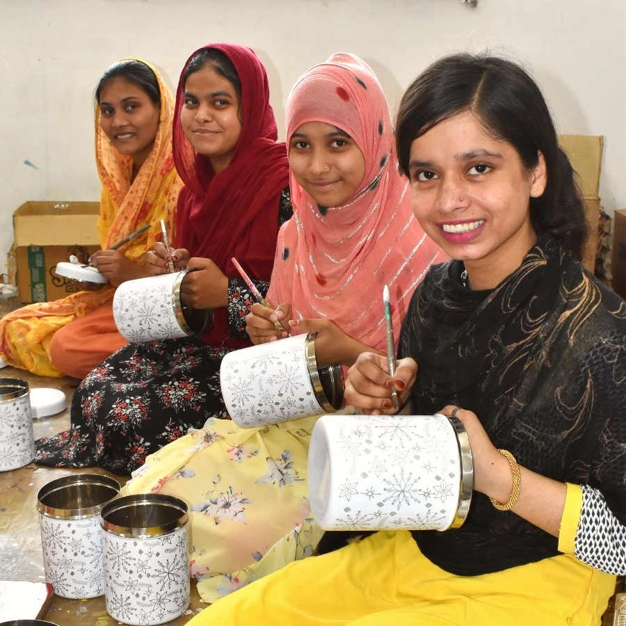 Love Welcomes offers handmade housewares and accessories that help displaced women stitch their lives back together and raise awareness about the common humanity we share with refugees and the value of welcoming people with love. They started by working with women in refugee camps to create welcome mats from the upcycled life jackets and blankets washed up on the beach from their journey. Love Welcomes now works across many locations and sells handmade products from women displaced by war, climate disaster, economic insecurity, and persecution. The work and the pay give the women a sense of productivity and purpose, reducing despair and raising self-esteem. Love Welcomes reinvests their surplus to provide language training, financial and digital literacy training, education, healthcare, maternity care, legal support, and trauma therapy to displaced communities. They are a registered Community Interest Company and an accredited Living Wage Employer.